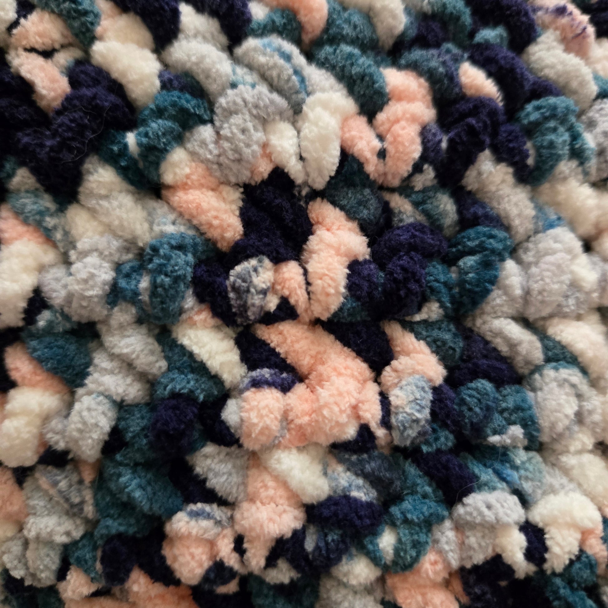 Clutch bag/wallet with small wristband for easy travel. Can fit your phone and few other important items without having to bring a whole bag. Hand-crocheted tightly with chuck plush yarn so no change or small items can fall out. Made with a envelope-styled opening that closed with a hand-crocheted button.